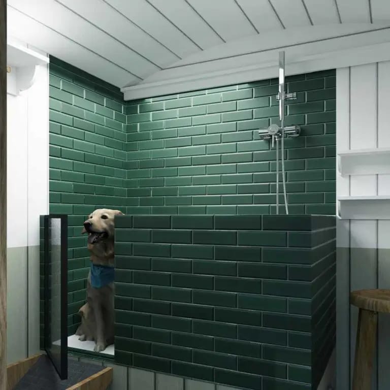 A quaint and cozy standalone unit to wash the outdoors out of your dog’s coat and paws.
