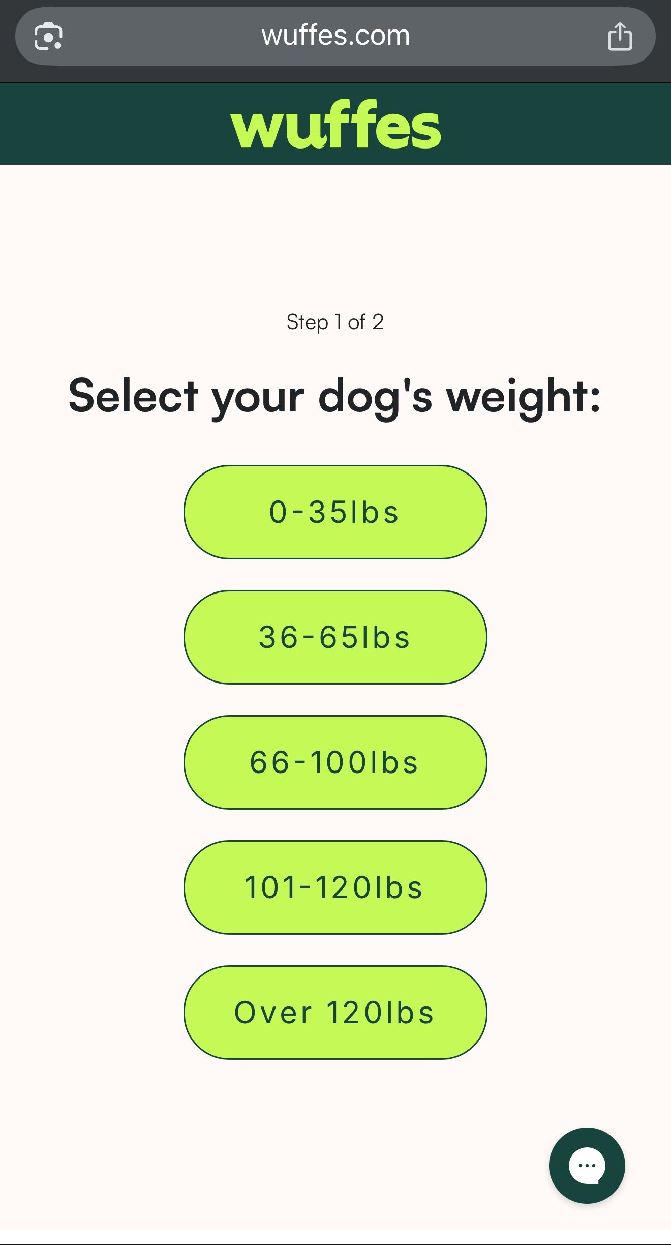 Once you click through on any of the CTAs you’re then brought to a questionnaire about your dog’s weight.
