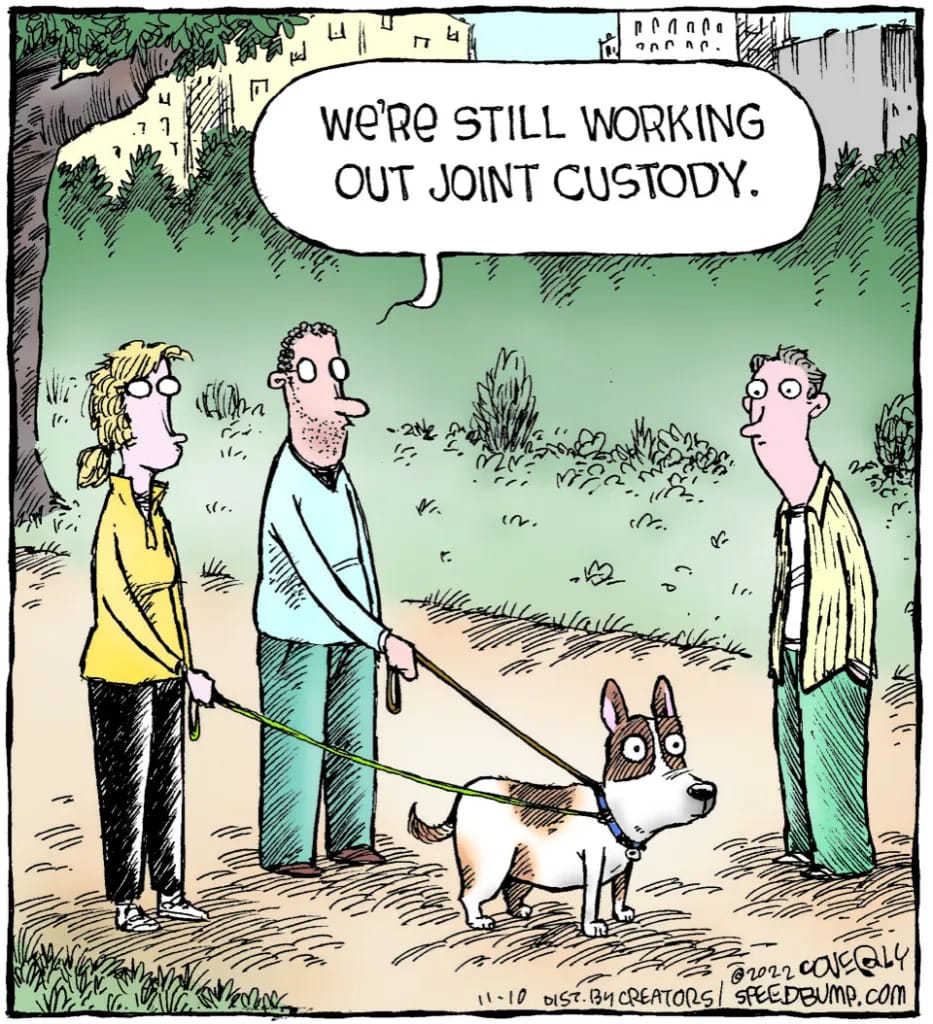 The amount of content on TikTok covering the complexities of dog ownership in divorce is mind boggling to say the least. Countless stories about fights over who gets the dog, the journey of sharing custody, the endless heartbreak of leaving them behind, etc.