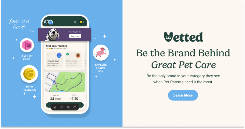 Pet care is moving home, and Vetted is the app that turns DIY care into coins, perks, and lasting everyday habits.